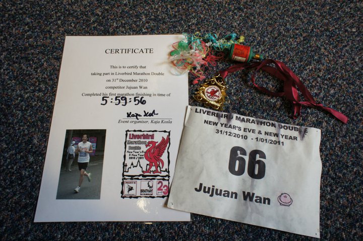藉口開始變多,不過陡降的溫度可不會對速度慢的跑者有絲毫憐憫之情,雖然這場比賽沒有時間限制,但耗得越久,只會增加感冒的機率。只好拖著沉重的步伐,努力往終點移動,總算最後在六小時前回到終點。在號稱歐洲千年最冷的這個冬天,還是憑著對馬拉松的熱情,從愛丁堡穿越了368公里,來到利物浦,完成了比賽。