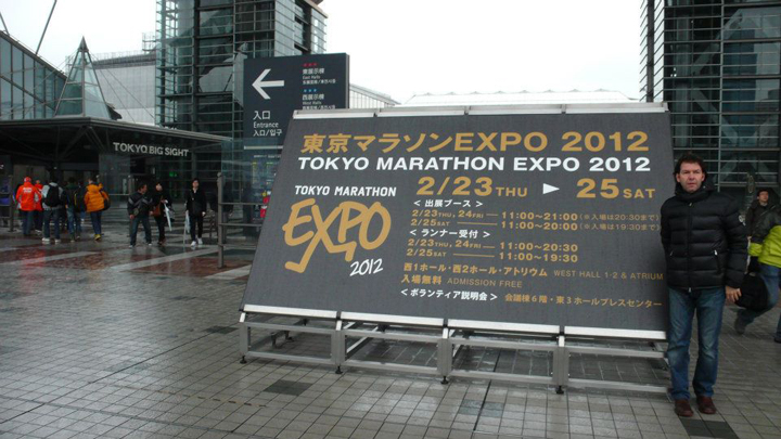 東京馬拉松的Expo位於港區有明的Tokyo Big Sight。拍照的跑友特別注意,因為室外和室內的溫差大,若忘記給攝影機一些溫暖,暖空氣滲入攝影機後,水氣便會在冰冷的鏡頭內結成水點,抹也抹不掉,室內拍出來的照片全都矇矓了。