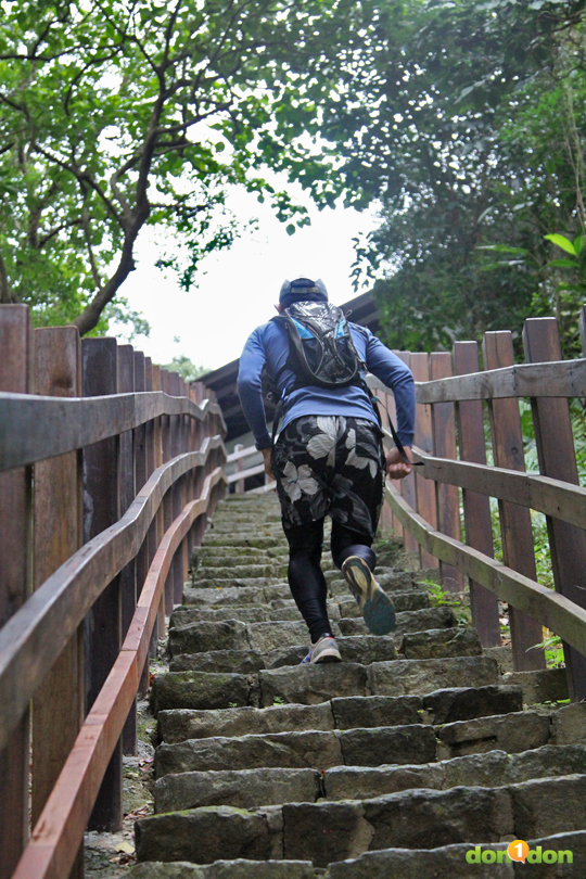 - 遇到陡坡以之字步上坡:如果正面往上跑,比較省力,但很容易滑倒,如果身體轉到側面,用之字步上坡,摩擦力增加,也不容易滑倒。當然坡度太陡,高手也是用快走的,因為坡度陡,就算用跑的也跑不快,跨大步快走會比較好,也讓心臟休息一下。