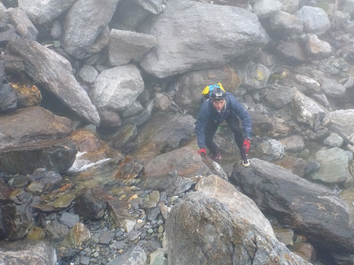 大家戴著頭燈繞著山莊到處大喊「賴錦源!賴錦源!」,讓我最擔心的是,他是唯一沒跑過這條路的隊員!只希望他有帶頭燈,至少不會跌落邊坡山谷。夜黑風高,我們也很難看到或聽到他,後來我爬上山莊頂樓,發現幾百公尺外有燈光,也急著大喊,治昀與阿慶同時間也飛快趕去確認。